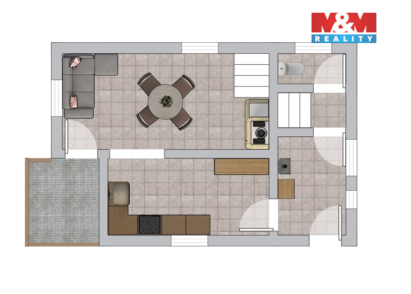 Součástí nemovitosti je terasa s nádherným výhledem do okolí.