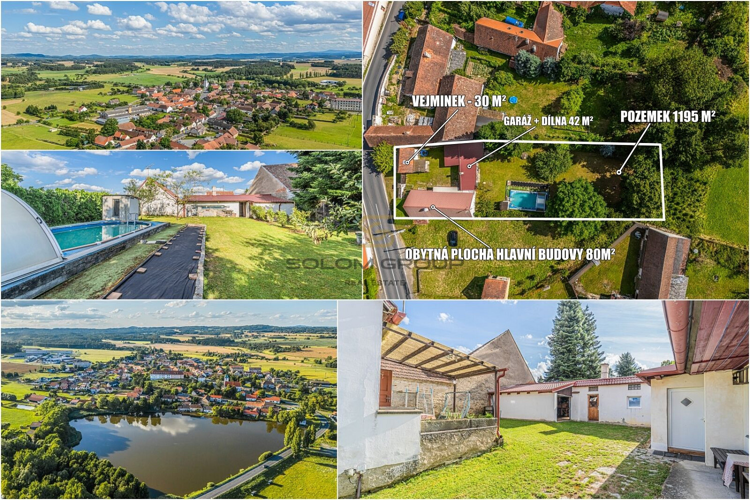 garáž, krytý bazén, sklad, dílna, technické zázemí, možnost velké půdní vestavby a pozemek o výměře 1.195 m².