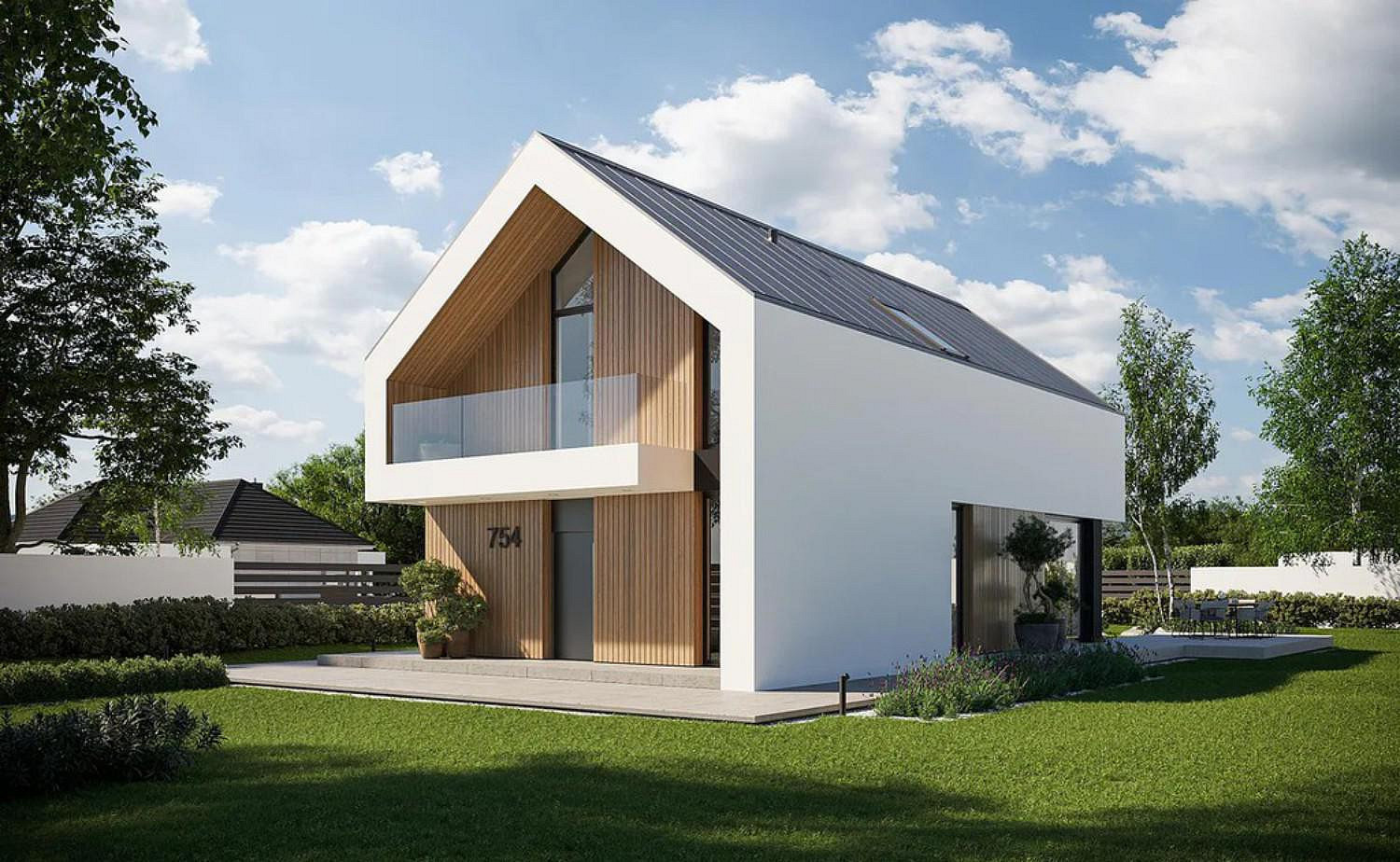 Modern je návrh moderního domu reagující na současné trendy architektury s obytným podkrovím, se sedlovou střechou, krytými balkony na štítových stěnách a terasou. Interiér domu je koncipován dle nejnovějších požadavků soudobého bydlení. Do projektu je možné zapracovat klientské změny. Samozřejmostí změn v projektu je možnost zrcadlového provedení. Připravíme profesionálně zpracované podklady pro stavební řízení a zajistíme provádění technického dozoru investora a komunikací se stavebním úřadem. Pro pohodlné užívání domu Vám navrhneme optimální způsob vytápění a větrání pro využití dotačních titulů. Dále návrh interiéru včetně úpravy exteriéru a mnoho dalších doprovodných služeb pro snadné jednání s bankou v rámci sjednání hypotéčního úvěru a jeho následného čerpání.