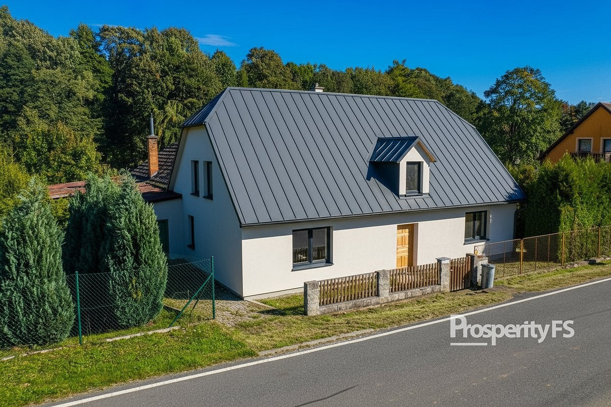 Nemovitost má dvě patra a je částečně podsklepená. V přízemí najdete prostorný obývací pokoj s útulným krbem, velkou kuchyni s jídelním koutem a komfortní koupelnu. V prvním patře je ložnice a rozlehlý půdní prostor, který nabízí široké možnosti pro budoucí vestavbu či rozšíření obytné plochy. Dále jsou k dispozici další místnosti, jež lze využít jako ložnice či pracovny podle vašich potřeb.