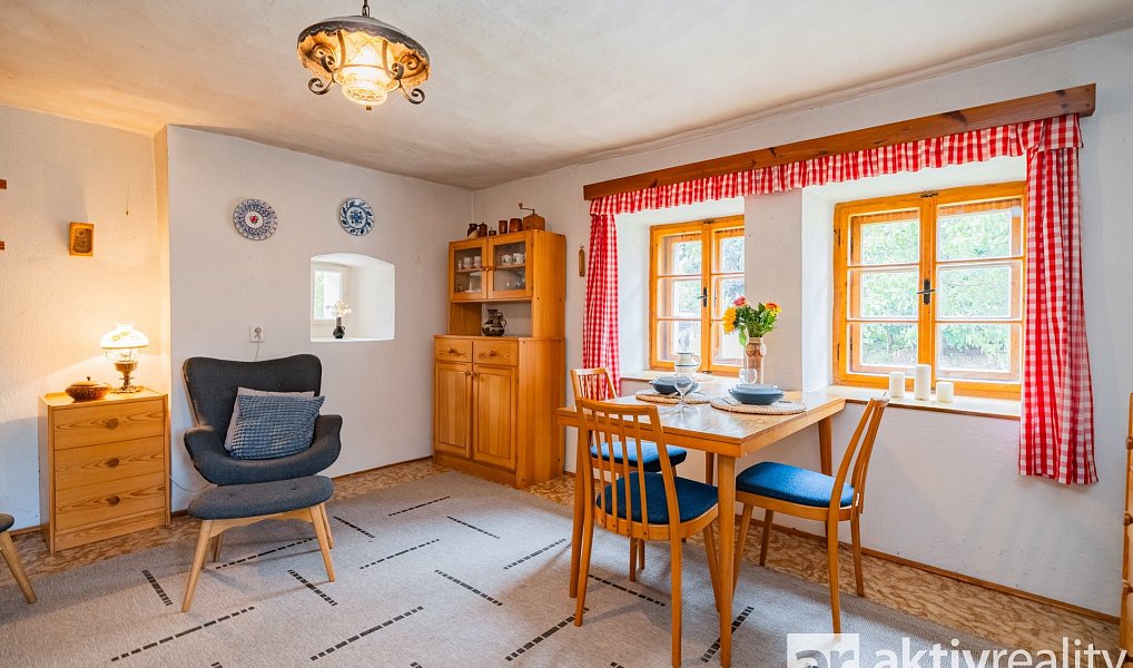Prodej samostatného domu 2+kk ve Vysoké na Kokořínsku – místo s klidem a opravdovou chalupářskou atmosférou. Podrobné informace najdete na webu viz video. Centrální místností je světnice, jakou máme na starých domech rádi: nízký strop, silné zdi, dřevěná okna s drobnými tabulkami a kamna, která dělají v létě chládek a v zimě teplo. Ze vstupní chodby se jde do menší ložnice, v zadní části je praktický kuchyňský kout. Nad celým domem se rozkládá prostorná půda – dnes ideální pro spaní hostů, do budoucna připravená na plnohodnotnou obytnou část. Uzavřený dvorek tvoří komorní centrum domu. Pár kroků od vchodu do domu je přístavek s koupelnou a toaletou. Hospodářské zázemí doplňuje garáž a několik úložných prostor. Pozemek je jednoduše „tak akorát“. snadno se udržuje, přitom nabízí soukromí pro posezení i drobné zahradničení. Příjezd ke garáži vede po mírném svahu přímo z ulice. Dům je udržovaný, má novou střechu a je napojen na obecní sítě včetně kanalizace. Vytápění zajišťují kamna. Poloha potěší, pokud nevyhledáváte úplnou samotu. Chalupa je přímo v obci, takže pár kroků je místní samoobsluha, kavárna a moderní hřiště. Všude kolem je CHKO Kokořínsko s mnoha trasami pro pěší i cyklisty. Do Mělníka je to necelých 9 km, s přímými autobusovými spoji. Dům je připraven k užívání hned a zároveň nabízí prostor pro citlivé, postupné dotvoření. Podrobné informace najdete na webu viz video.