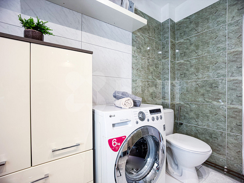 V přízemí domu se nachází vstupní chodba, pokoj, obývák s kuchyní a moderní kuchyňskou linkou a koupelna s toaletou.