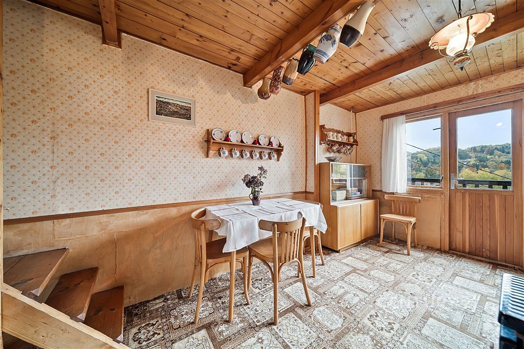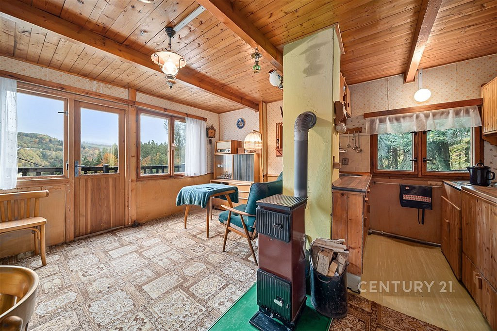 Chata nabízí přibližně 45 m² útulného prostoru a leží na pozemku o rozloze 393 m². Je dvoupodlažní, v dobrém stavu – tak akorát připravená na to, aby si ji nový majitel mohl upravit podle svých představ a přitom zachoval její původní kouzlo. Z malé terasy, 6,3 m², se otevírá výhled na okolní kopce a lesy – pohled, který se nikdy neokouká.