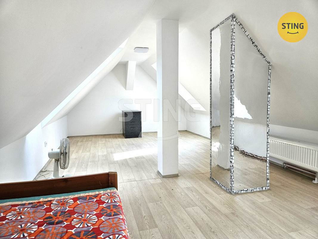 V podkroví je polovina prostoru upravena jako obytná část, druhá polovina slouží jako půda.
