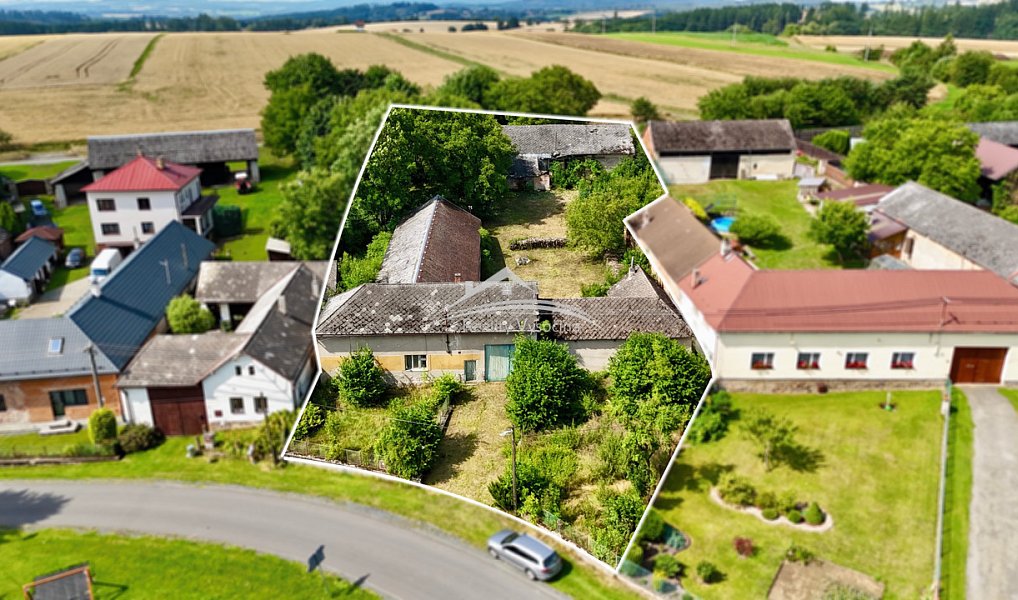 Původní stavby jsou určeny ke kompletní rekonstrukci. Vedle hlavní budovy se na pozemku nachází chlévy, sklad a samostatně stojící stodola. Právě stodola nabízí zajímavou příležitost – její odstranění a výstavba nového rodinného domu je reálnou možností. S ohledem na velikost a konfiguraci pozemku lze také zvážit jeho rozdělení a vytvoření novou stavební parcelu s příjezdem v zadní části domu po místní asfaltové komunikaci.