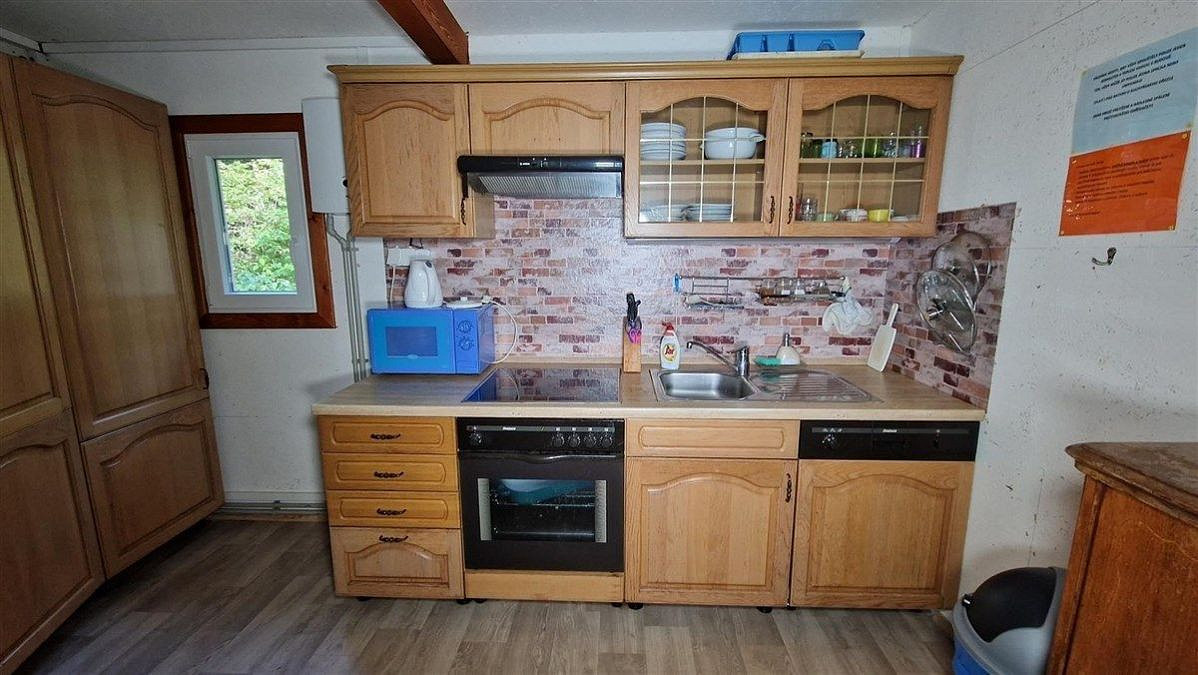 Nová chata: celkem 10 lůžek, 2x WC, sprcha, společenská místnost, vytápění el. přímotopy.