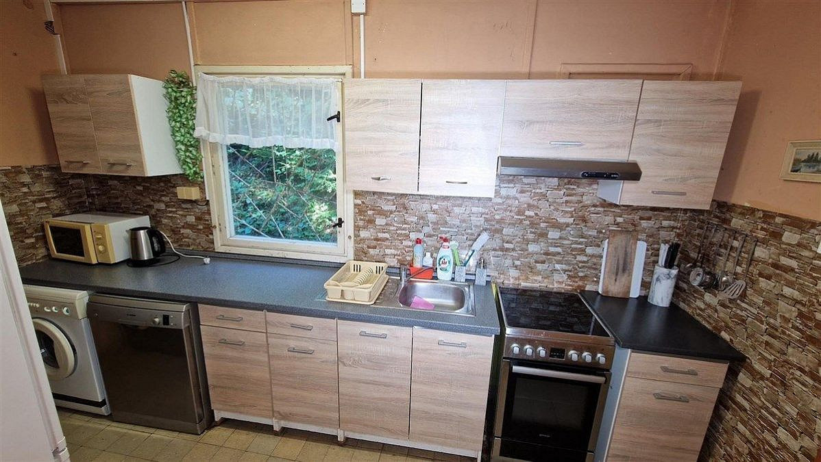 Dům správce: Obývací pokoj s kuchyňským koutem, dva pokoje, koupelna s WC, pracovna a předsíň.