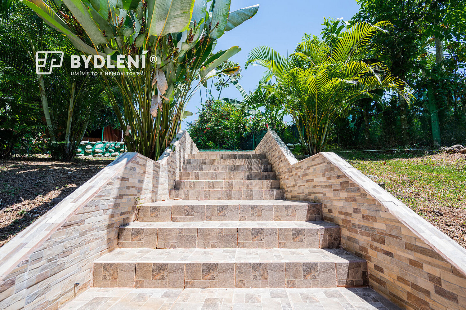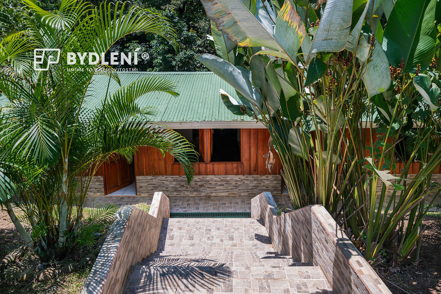 Ve vrchní části pozemku je prostorné vybetonované parkoviště a dům pro správce, který lze přebudovat na společenský prostor, případně jej využít pro prádelnu či jiné technické zázemí. Prádelna je rovněž k dispozici v přístřešku za tímto domem.