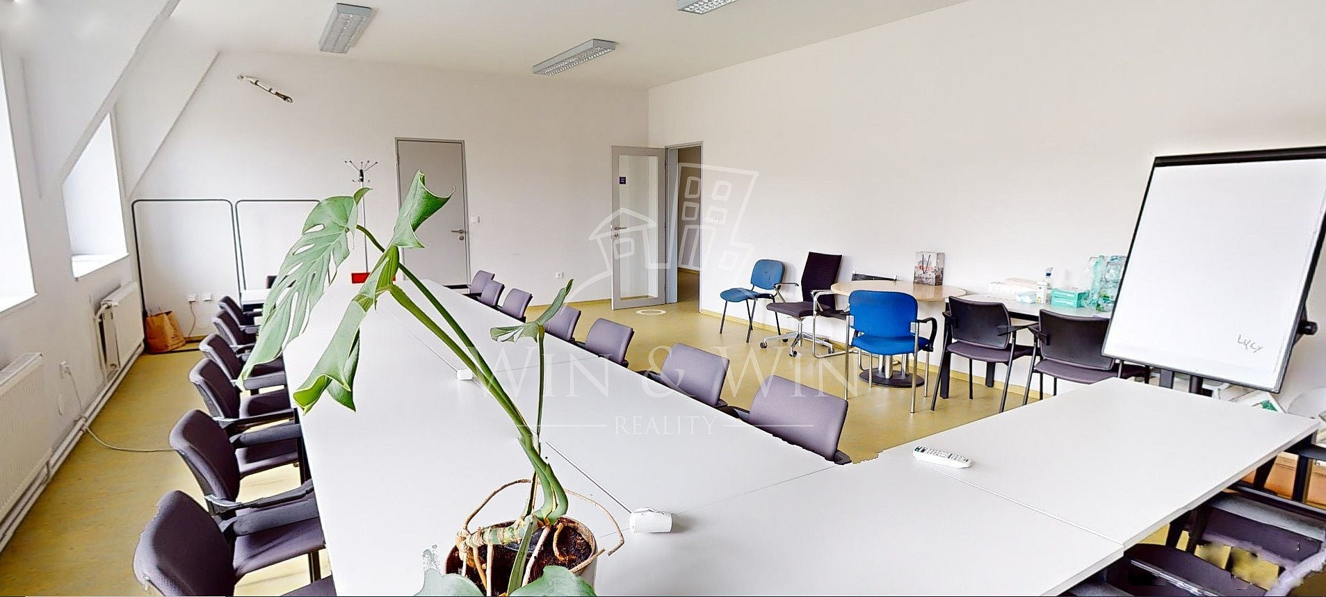 Budova má dva samostatné vchody, své oddělené prostory vč. sociálního zařízení, kuchyňky, kotelnu, ale také dostatek parkovacích míst.