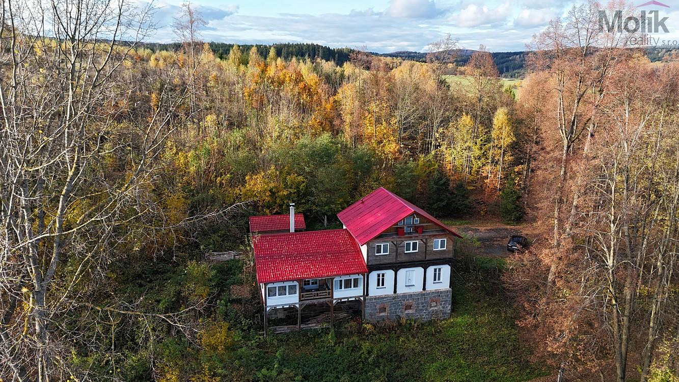 Zvažujete provozování penzionu v krásné krajině a klidném prostředí poblíž hranic se SRN? V tom případě Vás možná zaujme rozlehlý samostatný dvoupatrový dům s bazénkem ve sklepě, barem v prostorné hale v přízemí a možností ubytování v 7 pokojích. Nemovitost o užitné ploše 325 m² s pozemkem o celkové ploše 687 m² na samotě v katastru obce Lobendava je k prodeji včetně zařízení. Dům se nachází v prostředí lesíka, nedaleko obce Lobendava a její součástí jsou parkovací místa a příjezd je zajištěn samostatnou cestou z obce. Dům prošel z velké části rekonstrukcí, je vytápěn designovým krbem s rozvodem do radiátorů, ohřev vody je zajištěn elektrickým bojlerem, do domu je přivedena elektřina 230 a 400 V, dále přivedena voda ze studny a odpady jsou svedeny do septiku. Nemovitost je osazena plastovými okny a zateplena je 20cm polystyrenem, plechová střecha zateplena minerální vatou. Nemovitost a pozemek je střežen kamerovým systémem. U domu je postaven zahradní domek 6 x 4 m. Ve sklepních prostorech domu s vytápěnou podlahou se nachází bazén s perličkovou koupelí, sprcha a pokoj k odpočinku. V přízemí domu je rozlehlá hala s barem a proskleným balkonem, dále kuchyňka, 3 pokoje, toaleta a sprchový kout. V prvním patře je kuchyně s elektrickou varnou deskou a 4 pokoje. Dále se zde nachází schodiště do podkroví, ve kterém je pokoj s balkonem, ve výstavbě se sprchovým koutem a toaletou. V domě je 2x Wifi, zajišťující pohodlný příjem internetu v celém objektu. Vzhledem ke dvěma vstupním dveřím do nemovitosti umožňuje dům možnost bydlení ve dvou bytových jednotkách nebo bydlení pro velkou rodinu (případně vícegenerační). Vzhledem k místu, velikosti domu i pozemku se jedná současně i o zajímavou investiční příležitost s možností provozování penzionu. V případě zájmu Vám zajistíme výhodné financování této nemovitosti naším hypotéčním specialistou. Pro více informací nebo domluvení prohlídky volejte makléři 7 dní v týdnu.