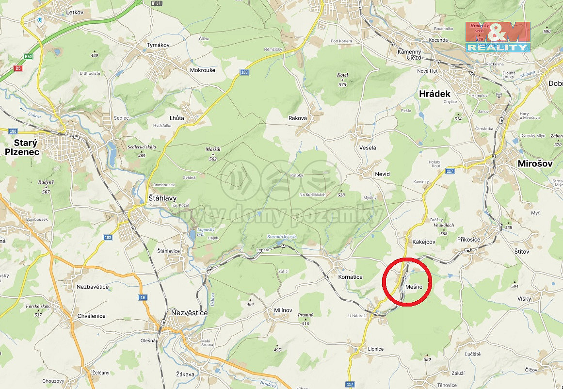 Nabízíme k prodeji krásnou stodolu v obci Mešno, ideální pro přestavbu na rodinný nebo rekreační dům. Nemovitost se nachází na okraji obce na svažitém pozemku o rozloze 759 m². Stodola má smíšenou konstrukci, nabízí užitnou plochu 96 m² a najdete v ní i malý sklep. Je zde zavedena elektřina a voda z veřejného řadu, což usnadňuje budoucí rekonstrukci. Objekt je v původním stavu, což poskytuje novým majitelům možnost přizpůsobit si prostor dle vlastních představ. Obec Mešno se nachází v atraktivní lokalitě v blízkosti Brd, plné příležitostí pro aktivní sportovce a turisty. Kontaktujte makléře a přijďte se přesvědčit o vše možnostech, které tato nemovitost nabízí.