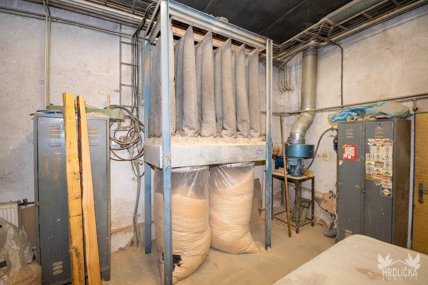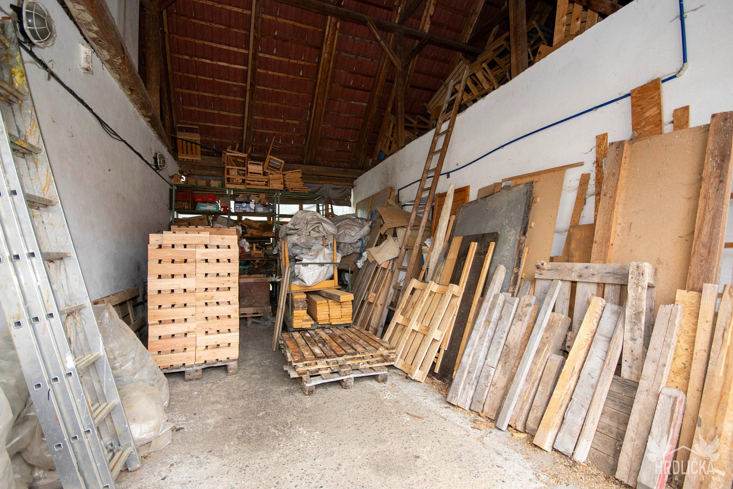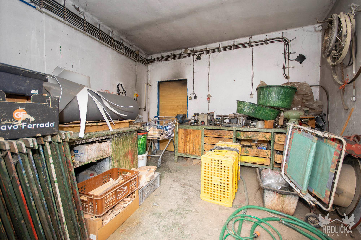 • Skladové prostory – uzavřený sklad 13 m² navazující na velkou dílnu a další sklad 24 m² u menší dílny.