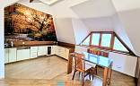 5. NP - 111 m² - Podkrovní byt s obývacím pokojem, jídelnou, kuchyní, ložnicí, koupelnou s rohovou vanou, šatnou a balkonem s úchvatným výhledem na město.
