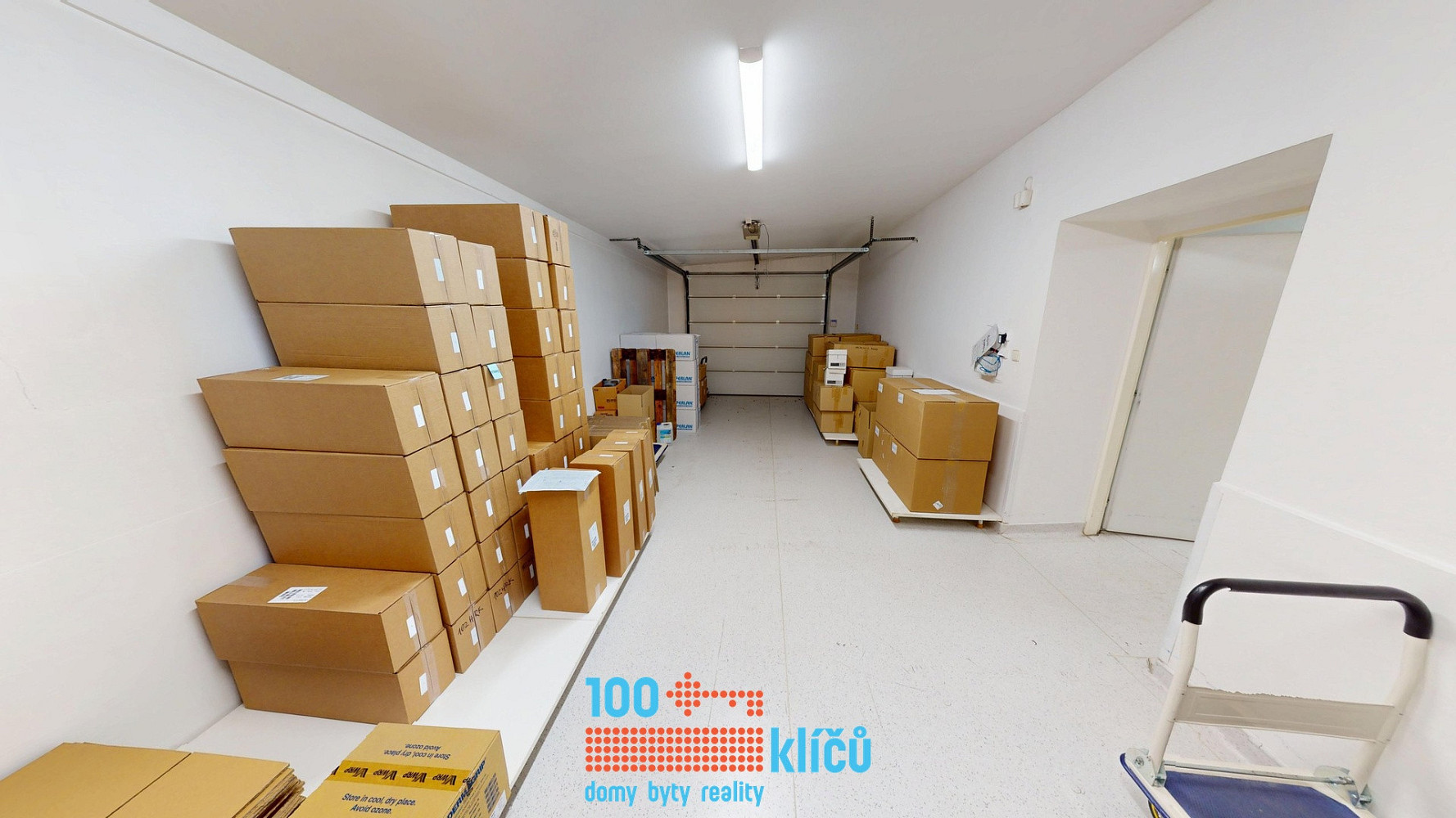 1. NP - 223 m² - Skladovací prostory, dvě garáže propojené interiérovými dveřmi s objektem (31 a 40 m²).
