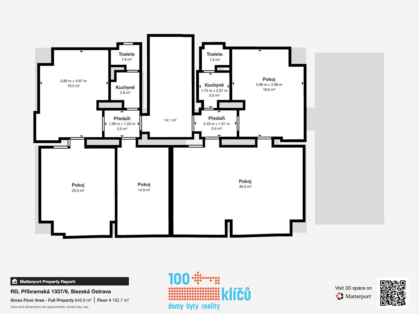 4. NP - 164 m² - Dvě jednotky se sociálním zázemím.