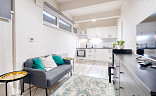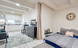 Jednotka se skládá z prostorné obytné části s kuchyňskou linkou, varnou deskou a pečící troubou. Dále zde nalezneme televizi a pohovku. Ložnice s postelí je částečně oddělena výklenkem a závěsem. Moderní koupelna nabízí velký sprchový kout. V Chodbě pak naleznete vestavěnou skříň.
