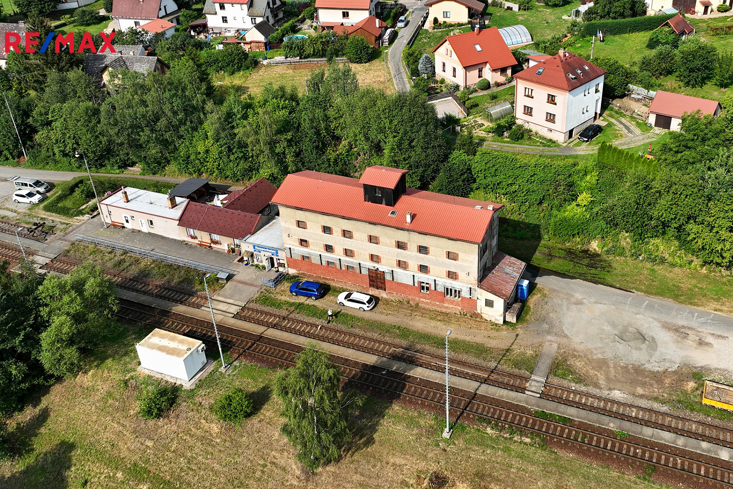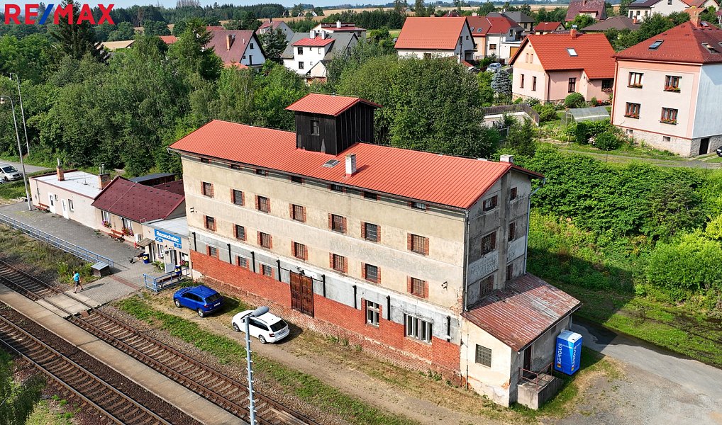 V těsné blízkosti vlakového nádraží Vám nabízíme k prodeji skladový a výrobní prostor o užitné ploše 600 m² s okolními pozemky o ploše 1154 m². V budově se nachází původní a stále funkční výtah a skluzavka na pytle. Nosnost jednotlivého patra je 60 tun. V roce 1999 proběhla na budově rekonstrukce střechy. Součástí prodeje je kompletní projektová dokumentace na rekonstrukci budovy a závazná stanoviska dotčených orgánů. Příjezd po obecní asfaltové komunikaci. Bezproblémové parkování na vlastních pozemcích.