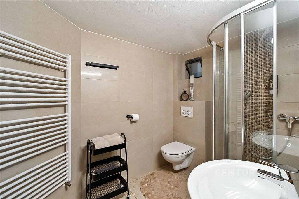 Dolní patro: samostatný pokoj s 2 lůžky, vlastní koupelna s WC