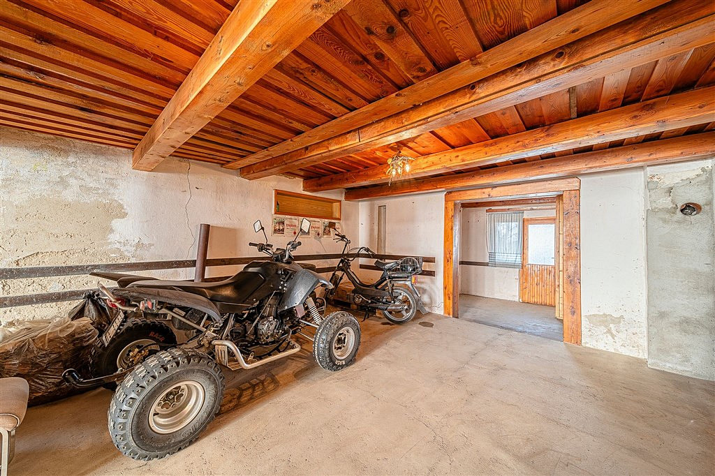 ___ V druhém nadzemním podlaží s trámovým stropem lze vybudovat atraktivní apartmán s pěknou terasou.