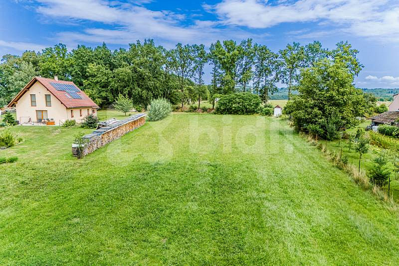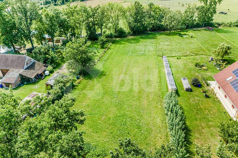 Okraj obce Čichtice, předposlední parcela, stranou v boční uličce.