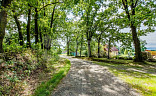 Příjezd asfaltkou lemován dubovou alejí. Přístup také z druhé strany