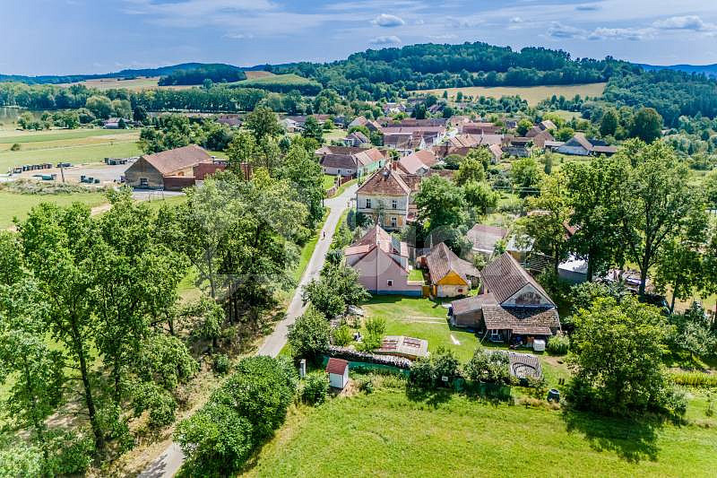 a volná krajina. V okolí lesy a rybníky, řeka Blanice.