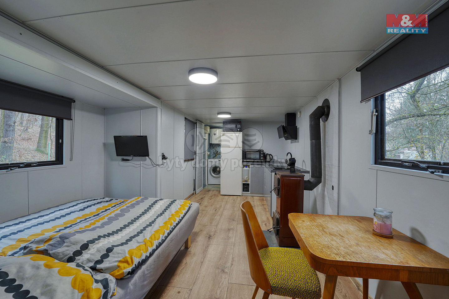 Pozemek disponuje předschváleným projektem na chatu s obytnou plochou 76,5 m². Na pozemku je celoročně obyvatelné nákladní auto s moderním interiérem, dílna, pergola, parkování pro 3 auta a loni vysázené ovocné stromy.