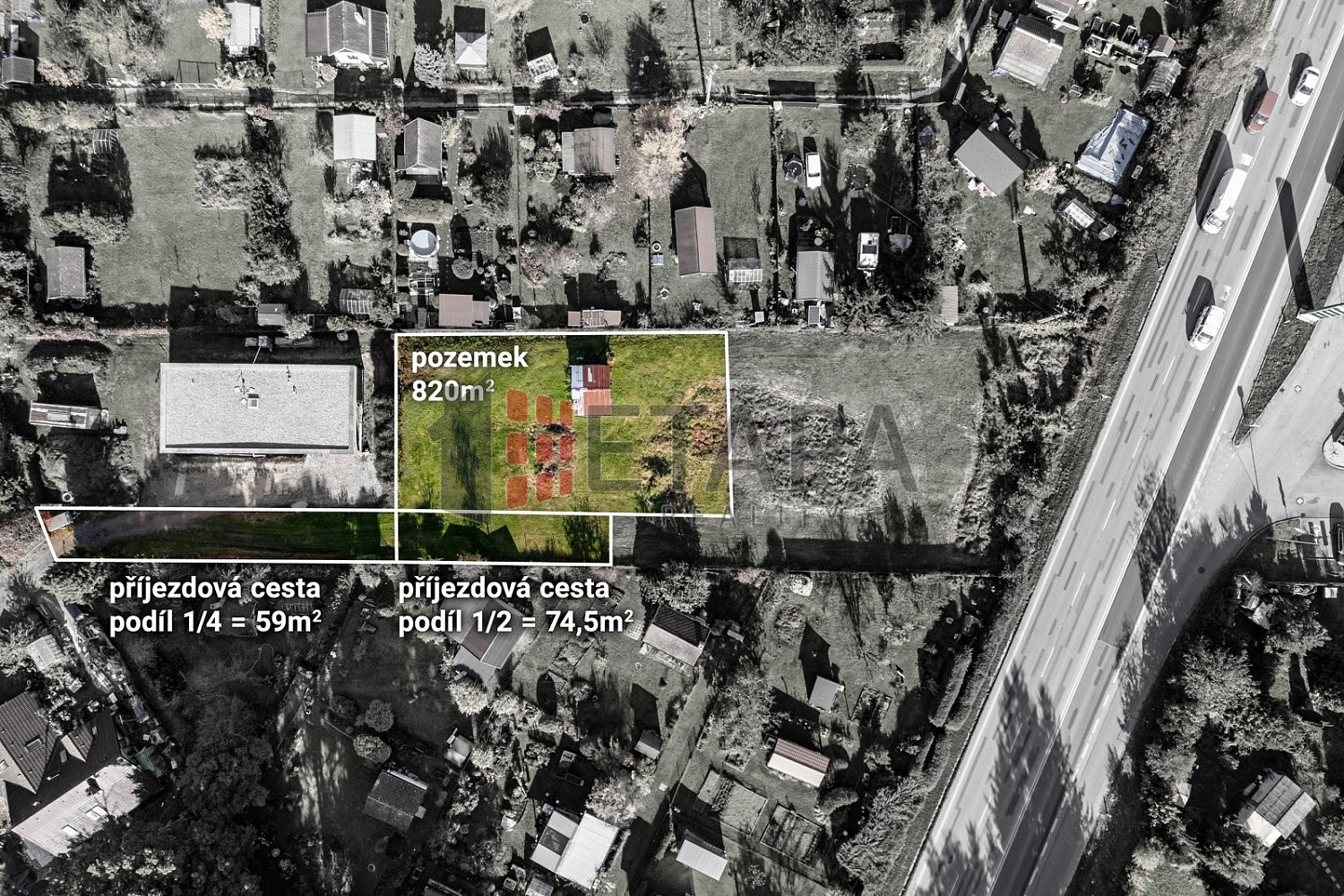 Terén pozemku je mírně svažitý a poskytuje krásný výhled do okolní krajiny – osobní návštěva je rozhodně doporučena. Dle územního plánu je pozemek určen k výstavbě nízkopodlažního rodinného domu. Zastavitelnost činí až 35 % celkové plochy, přičemž hlavní stavba může zaujmout maximálně 25 %. K pozemku náleží také podíly na dvou parcelách o celkové výměře 133 m², které slouží jako příjezdová cesta. Veškeré inženýrské sítě – elektřina, plyn, vodovod a kanalizace – jsou dostupné přibližně 50 metrů od hranice pozemku.