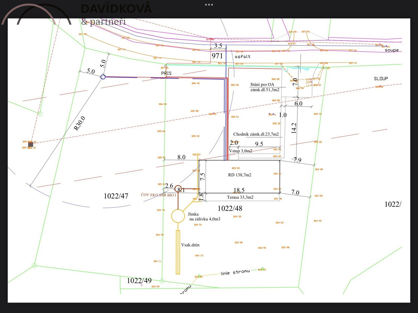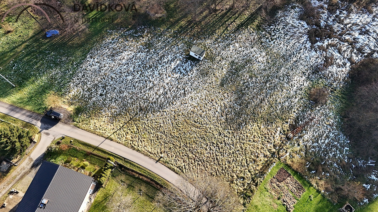 Sítě: obecní vodovod a elektřina jsou na vyvedeny na hranici pozemku, je k dispozici hydrogeologický posudek pro vrt studny a povolení k čističce pro kanalizaci.
