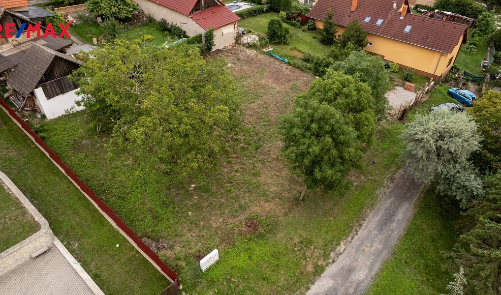 Obdélníkový pozemek se nachází v zástavbě rodinných domů v klidné části obce. Na hranici pozemku je zavedena elektřina se zkolaudovanou rozvodnou skříní, na pozemku je přípojka obecní kanalizace a obecní vodovod je možno vést přes pozemek souseda.