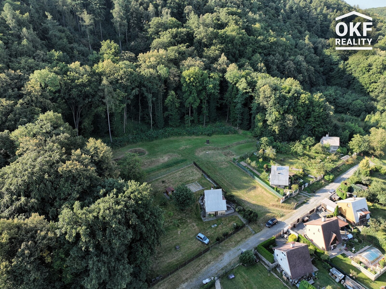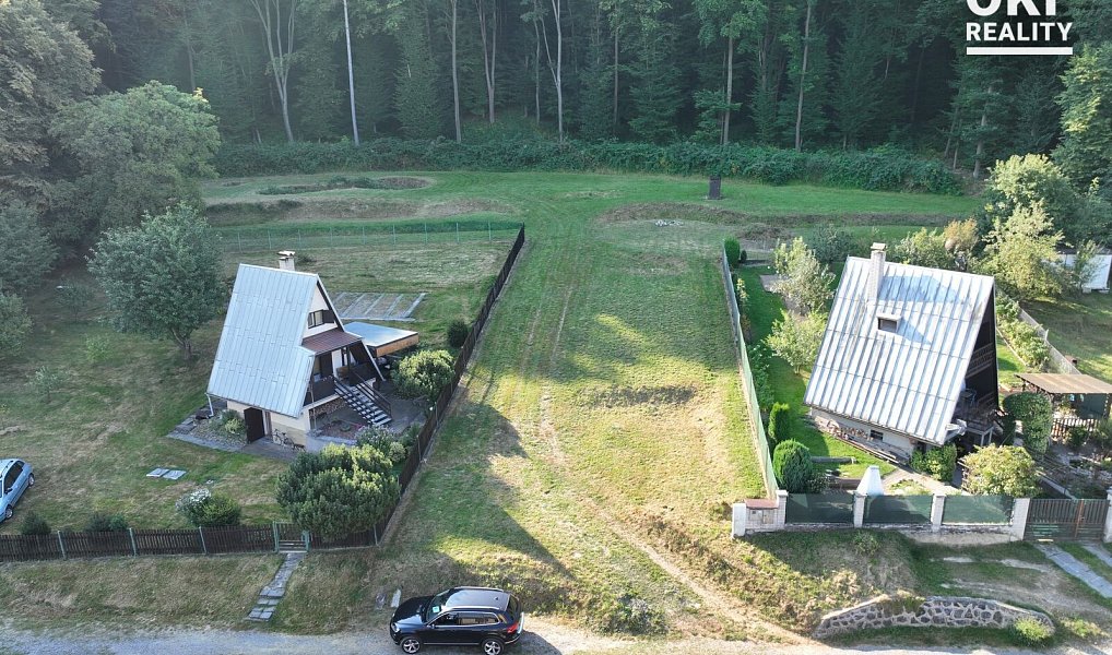 Příjezd k pozemku je po asfaltové komunikaci, až posledních cca 100 m je po zpevněné, štěrkové komunikaci. Pozemek je z části oplocený, ze zadní strany Vám bude krýt záda vlastní les. A vzhledem k tomu nebudete mít ani nouzi o nedostatek palivového dříví.