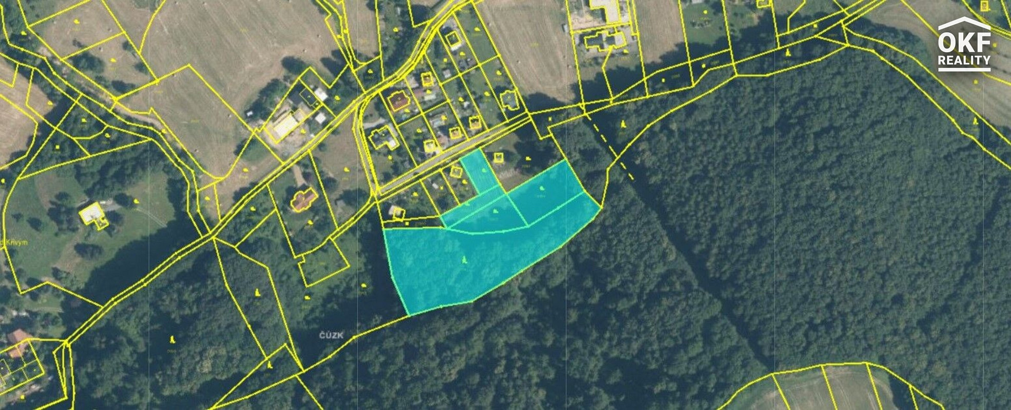 Prodej stavebního pozemku 860 m², zahrady 2004 m², lesa 5570 m², Obec Hranice