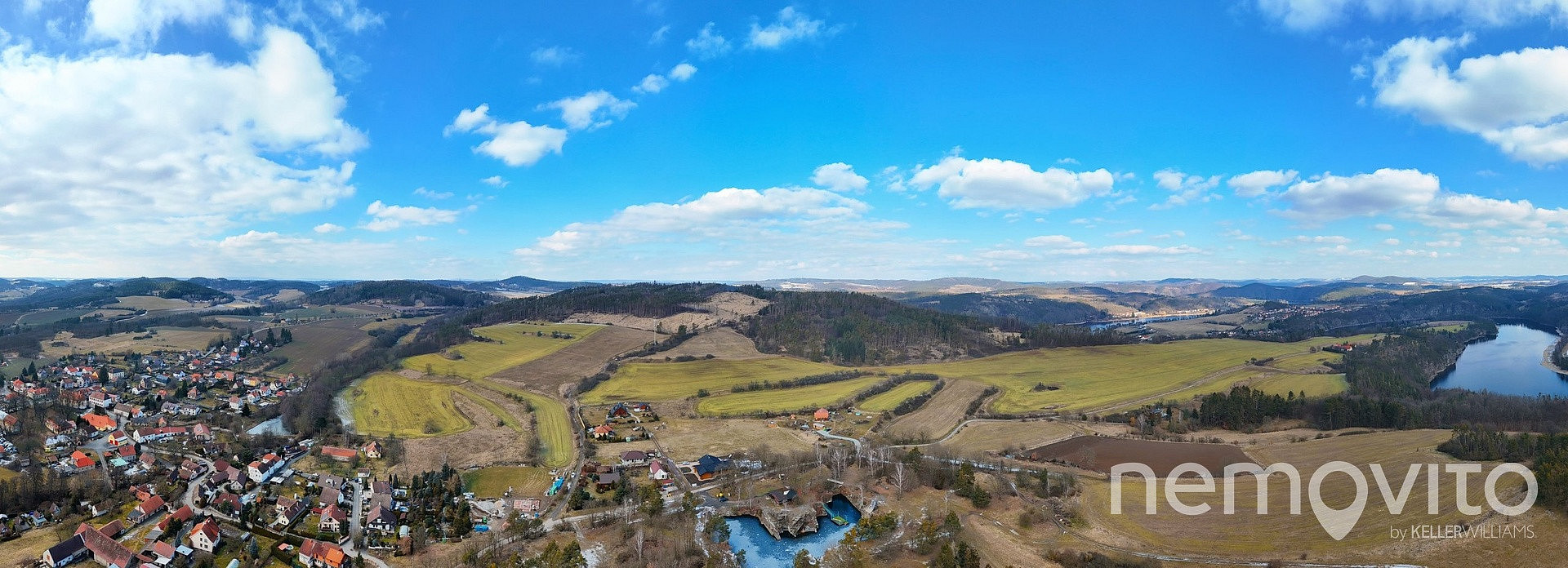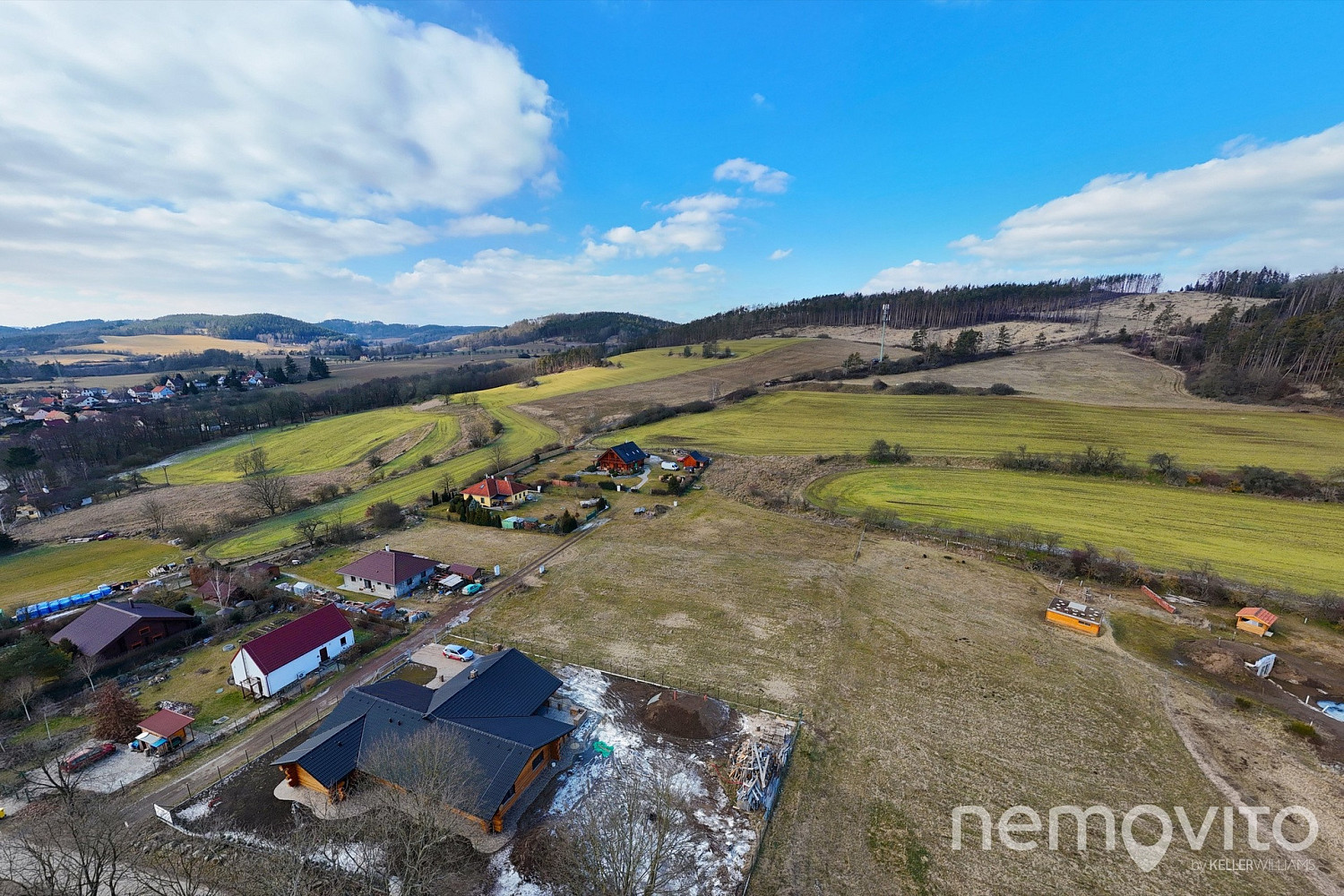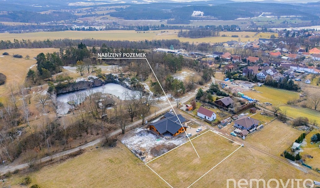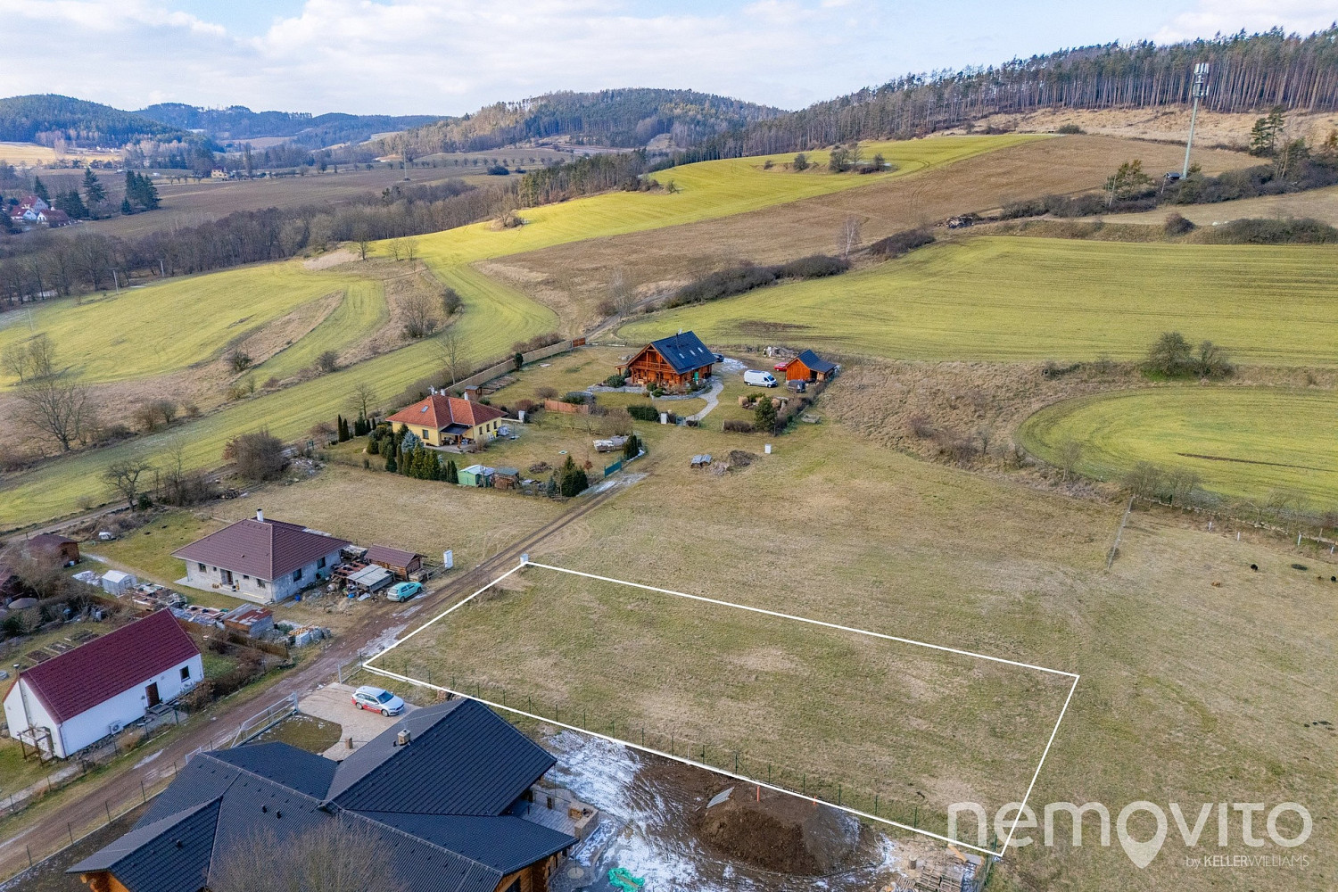 Stavební pozemek pravidelného obdélníkové tvaru a rovinatého terénu o velikosti 1.308 m² je umístěný hned vedle známého hřimězdického lomu, pod vrchem Doubek a zhruba 700 m vzdušnou čarou od hladiny vodní nádrže Slapy. Mimo velmi solidní plochy pozemku je hlavním benefitem malebná okolní příroda, kterou je obklopen.
