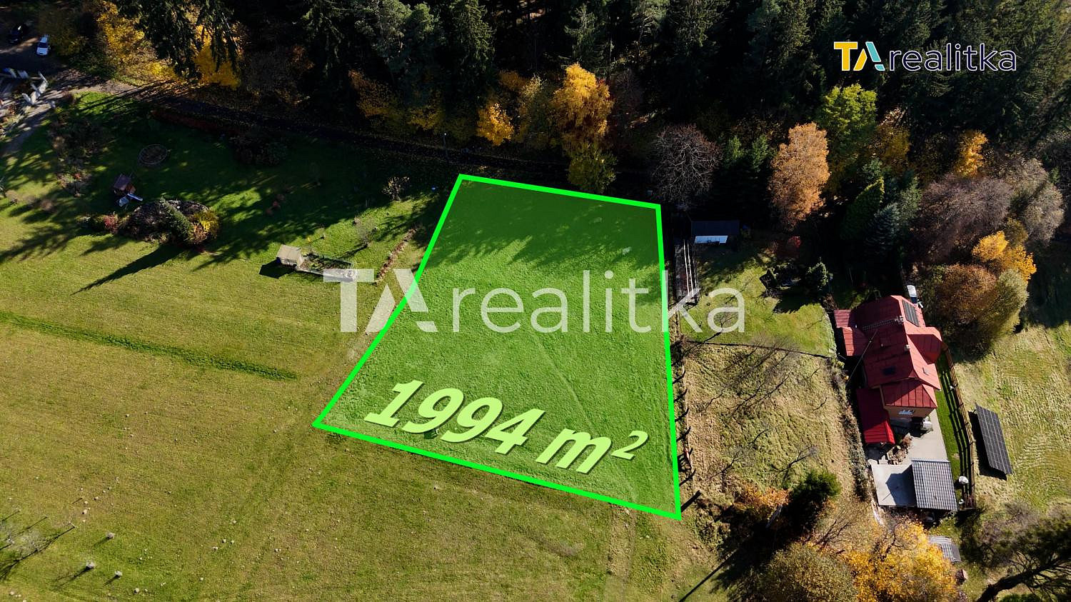 Pozemek se nachází v krásném prostředí s nádherným výhledem na okolní krajinu.