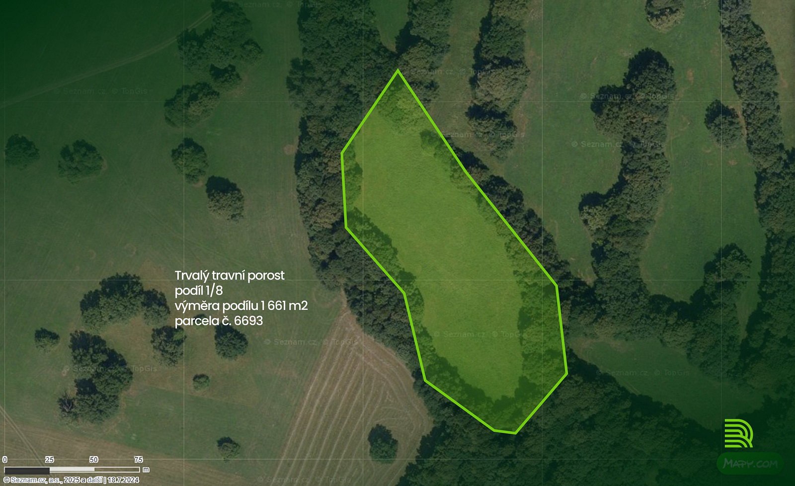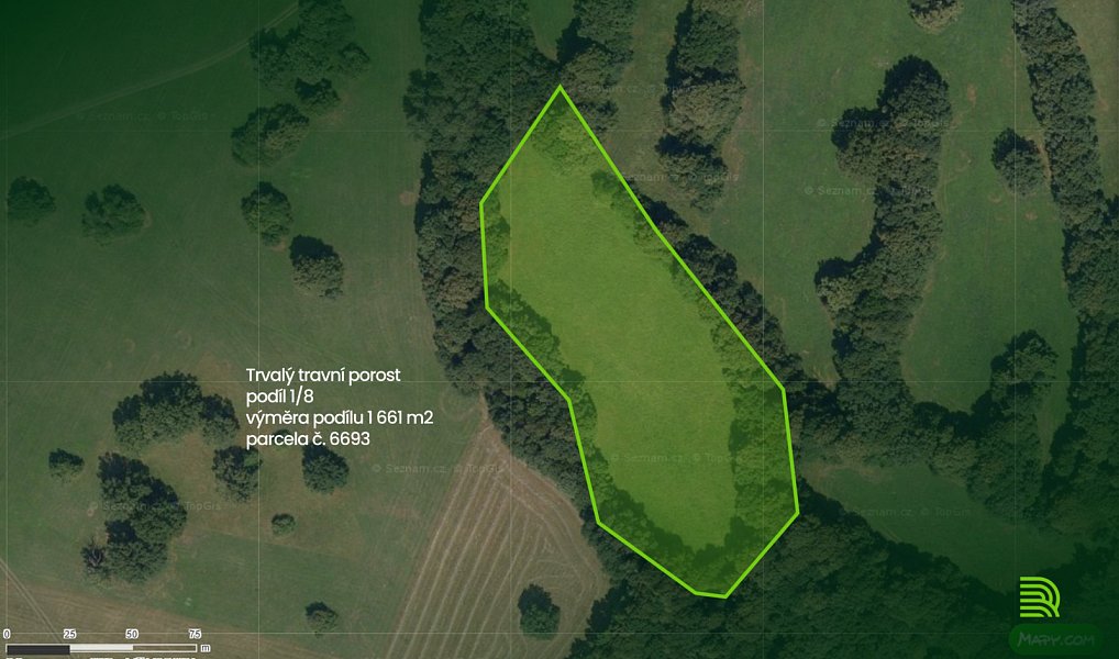 Jedná se o prodej podílu 1/8. Výměra podílu je 1 661 m².