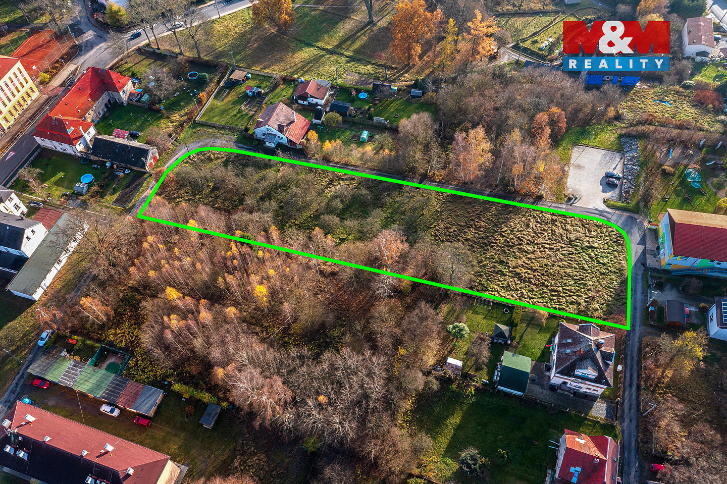 Územní plán umožňuje kombinaci bydlení a podnikání – část pozemku je určena pro rodinný dům nebo menší bytový dům, druhá část pak pro komerční využití jako obchod, kanceláře, služby či menší penzion.