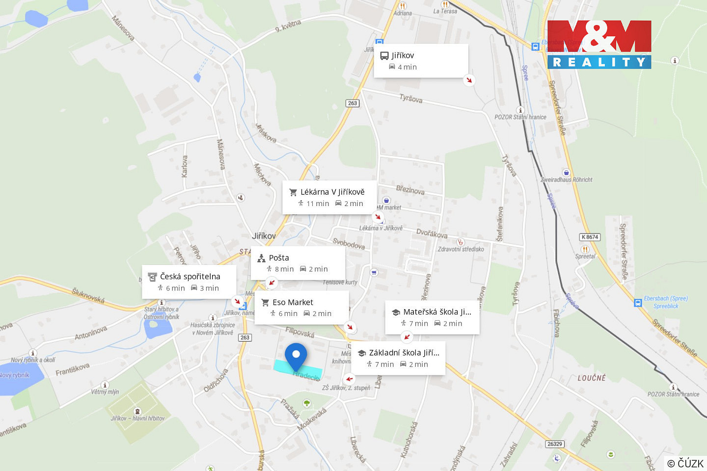 Vše v zastavěném území města, s dostupností veškerých sítí i občanské vybavenosti – škola, obchod, pošta i lékárna jsou doslova pár minut od pozemku.
