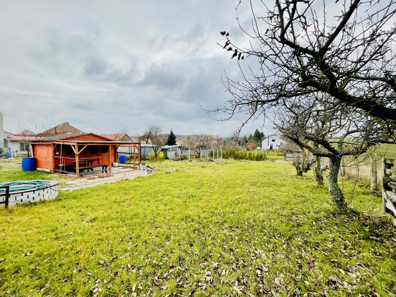 Pozemek je oplocený a rovinatý s travním porostem.