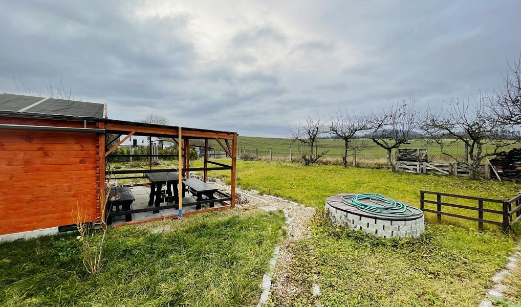 Na pozemku nová přípojka elektřiny vč. elektroměrového rozvaděče s osazeným elektroměrem s jističem 3B/20A (i FVE), plechová garáž s rozvaděčem s funkčními zásuvkami a osvětlením, studna cca 15m hluboká o průměru cca 1m a s cca 7m vodním sloupcem vody s osazeným čerpadlem, nový suchý záchod a malý cca 3 roky starý zahradní domek s pergolou. Na pozemku se nacházejí starší ovocné stromy a vzrostlý ořech.