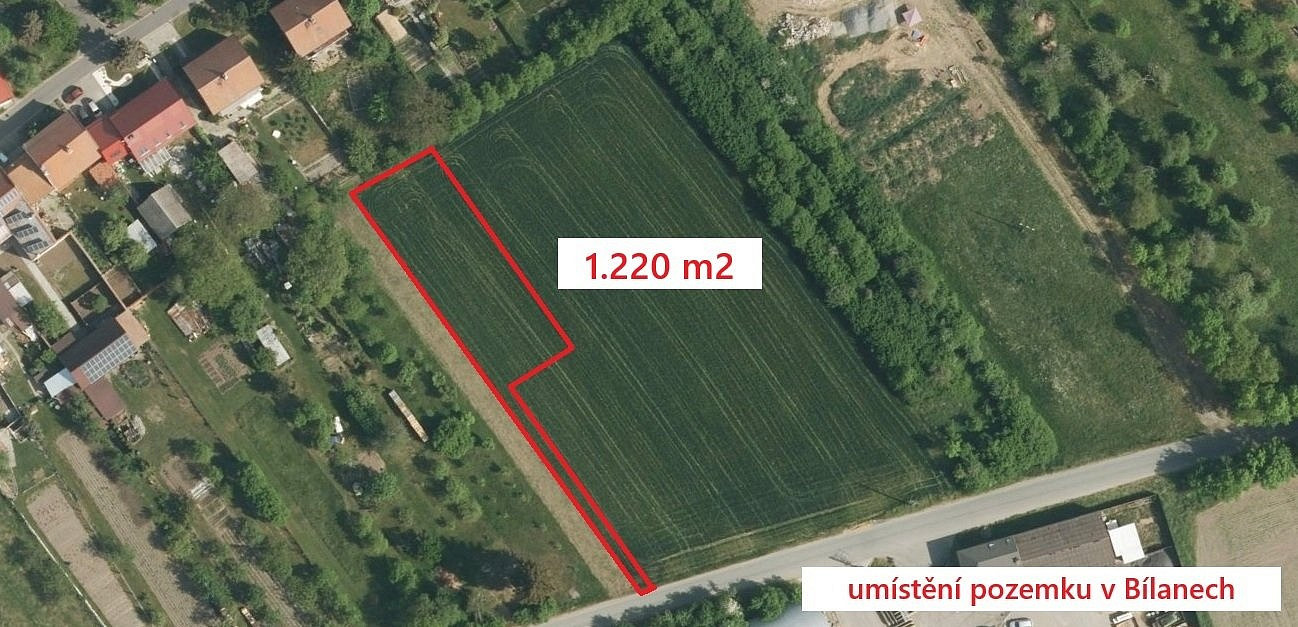 Prodej stavebního pozemku – 1 220 m², Bílany u Kroměříže