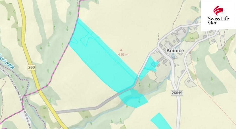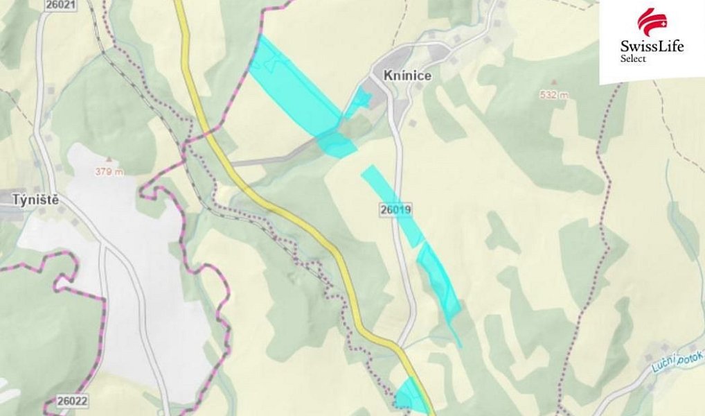 Prodej souboru pozemků v katastrálním území Knínice u Touchořin, celkově se jedná o 130.023 m².