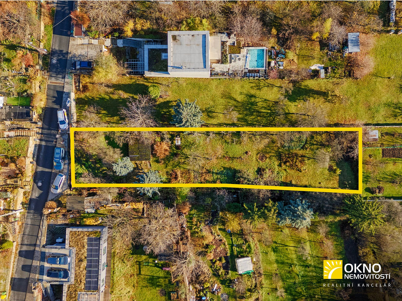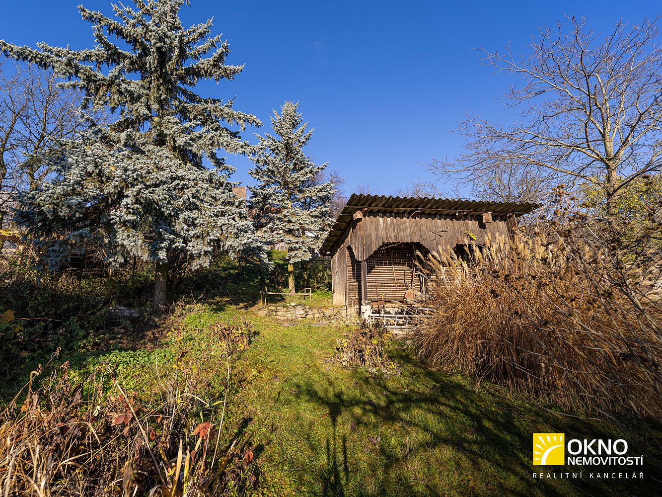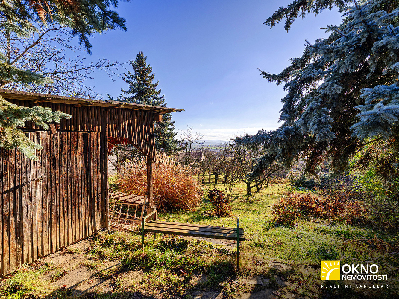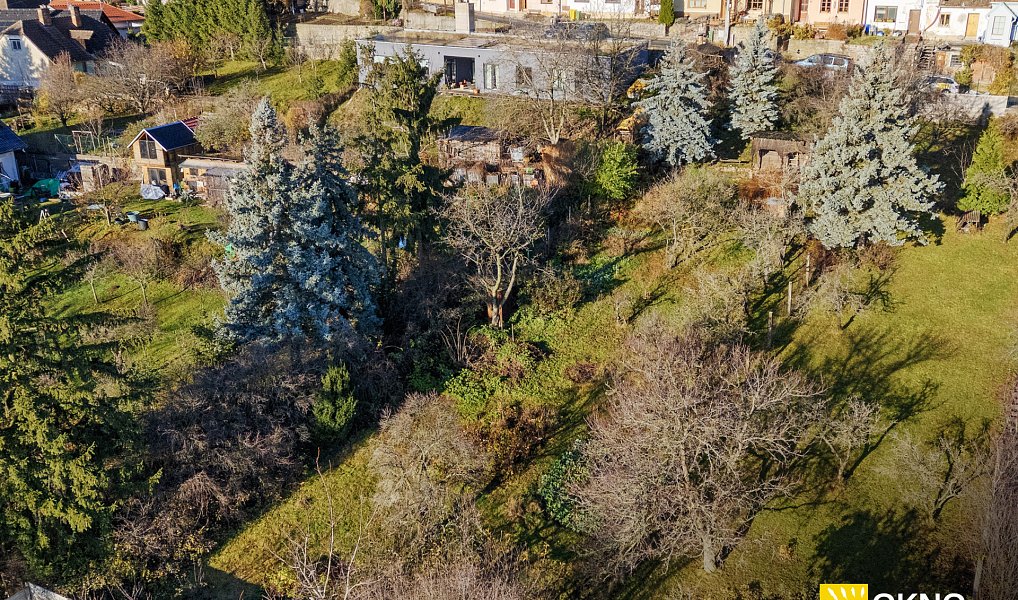 Svažitý terén dodává pozemku jedinečné kouzlo a otevírá působivé výhledy do okolní krajiny. V současnosti je pozemek udržován jako zahrada s ovocnými stromy a stojí zde také dřevěná chatka, kterou lze využít na nářadí a uskladnění zahradního náčiní.