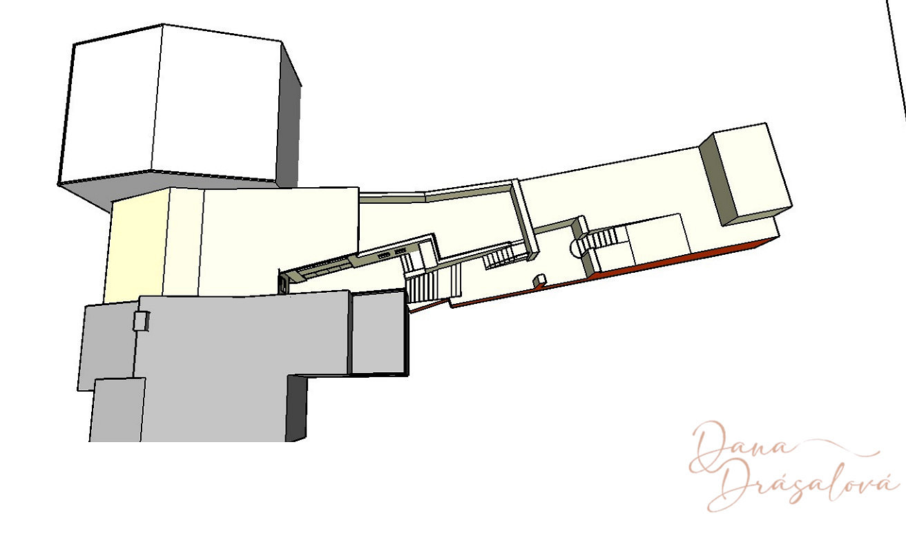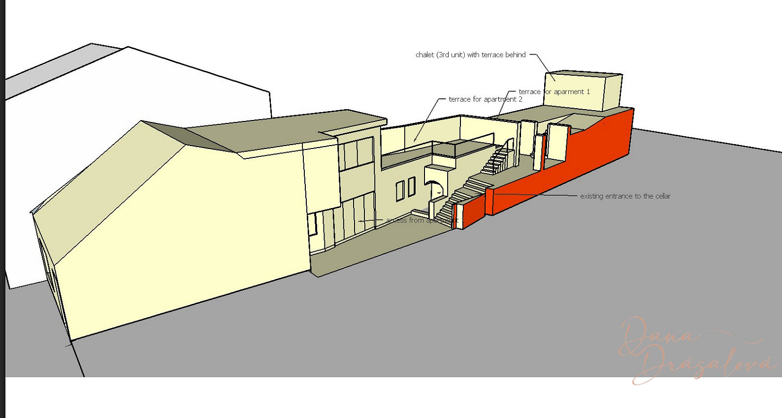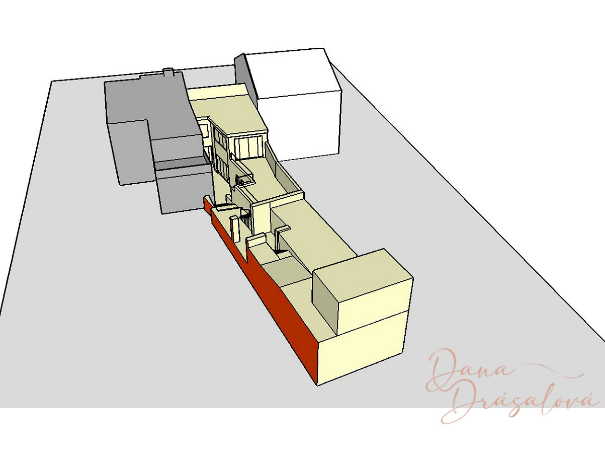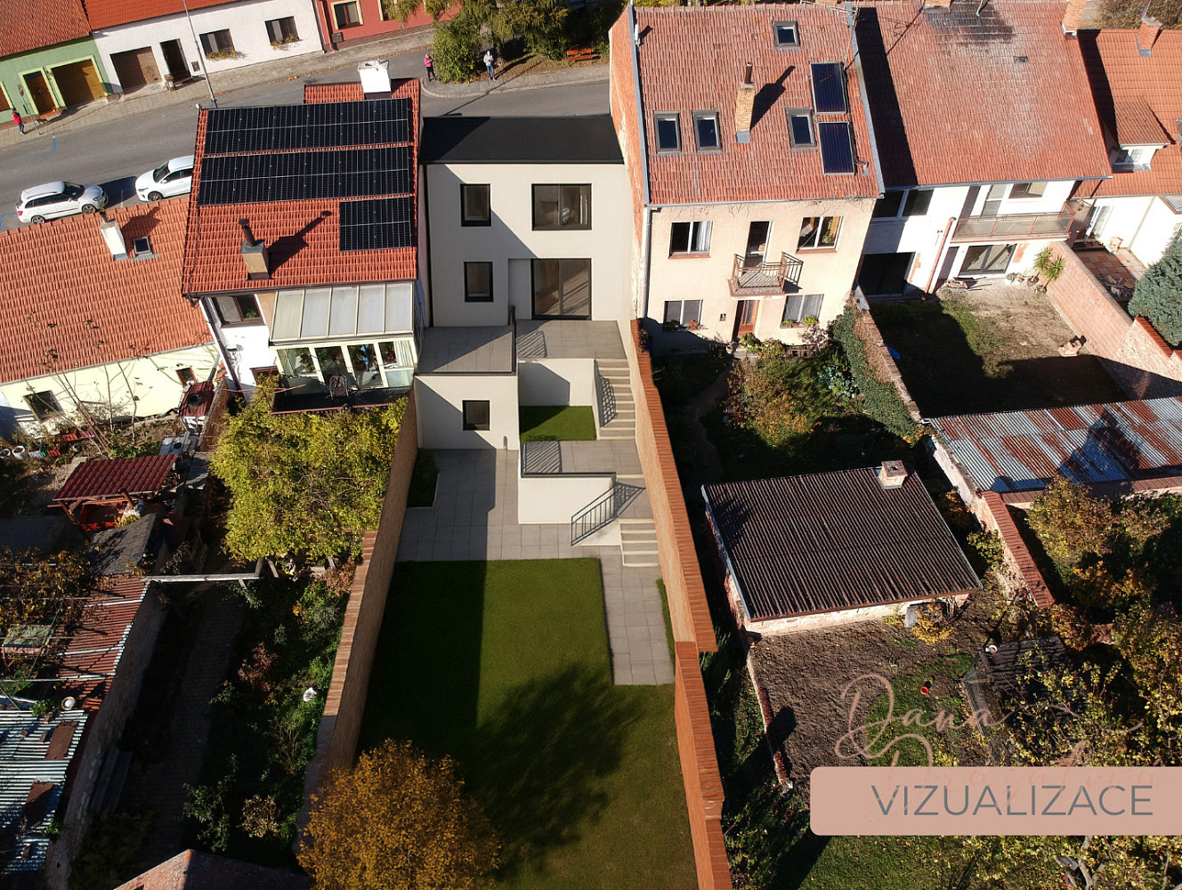 Pro inspiraci mohu zájemcům předat orientační vizualizaci domu, která ukazuje, jak elegantně lze historii tohoto místa přetvořit v moderní domov s duší.
