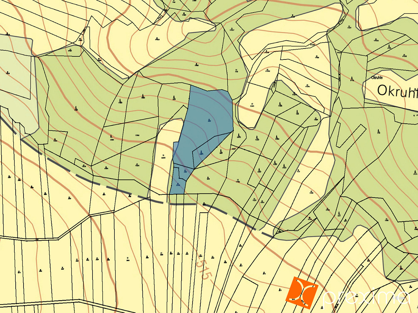 Parcela č. 2227/1 (lesní pozemek) o výměře 1090 m²