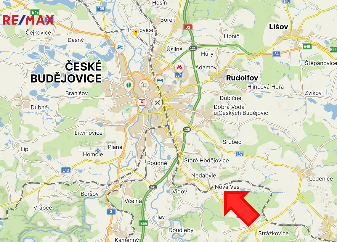 Autem se do Českých Budějovic dostanete během pár minut. Zastávka autobusu je od pozemku vzdálená asi 750 m. Vlaková zastávka je podobně daleko.