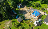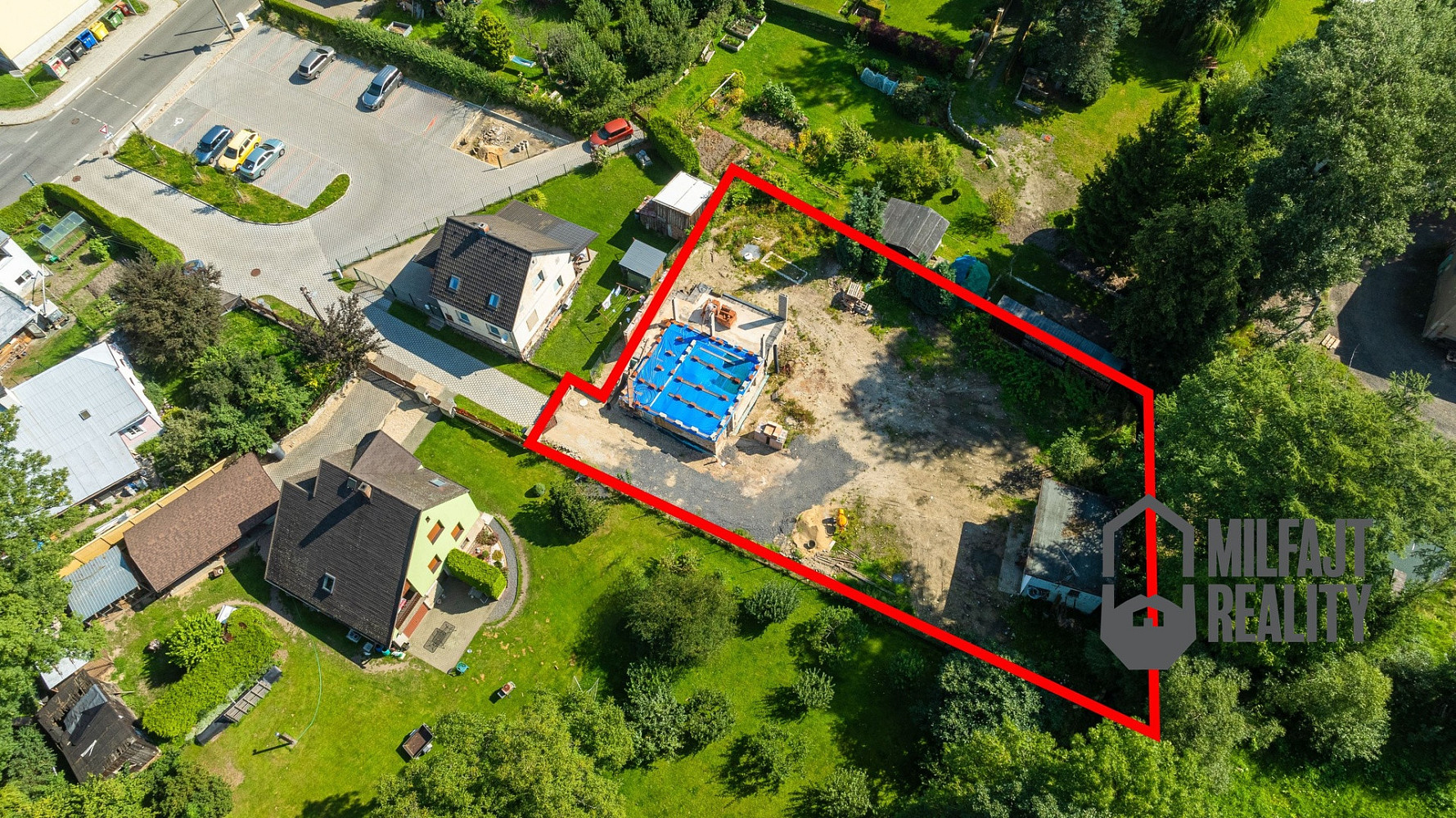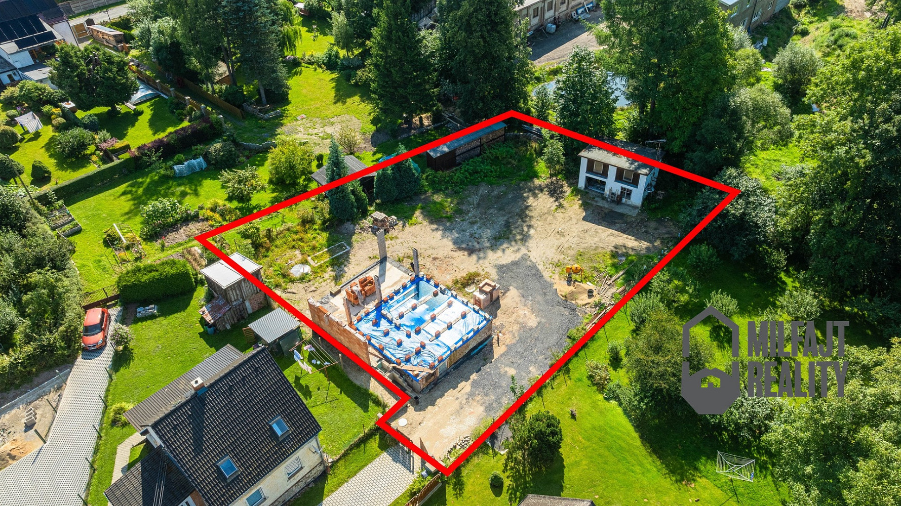 Na pozemku původně stála stavba rodinného domu. Současný majitel nechal vytvořit projekt na jeho přestavbu, který je možné přenechat. Aktuálně došlo nejen k demolici původní stavby, ale především ke kompletní sanaci základové desky, její odizolování, sanaci vody, drenážím okolo domu a stejně tak přípravě nových přípojek. Upřímně, takhle poctivě vybudované základy se vidí zřídka kdy.