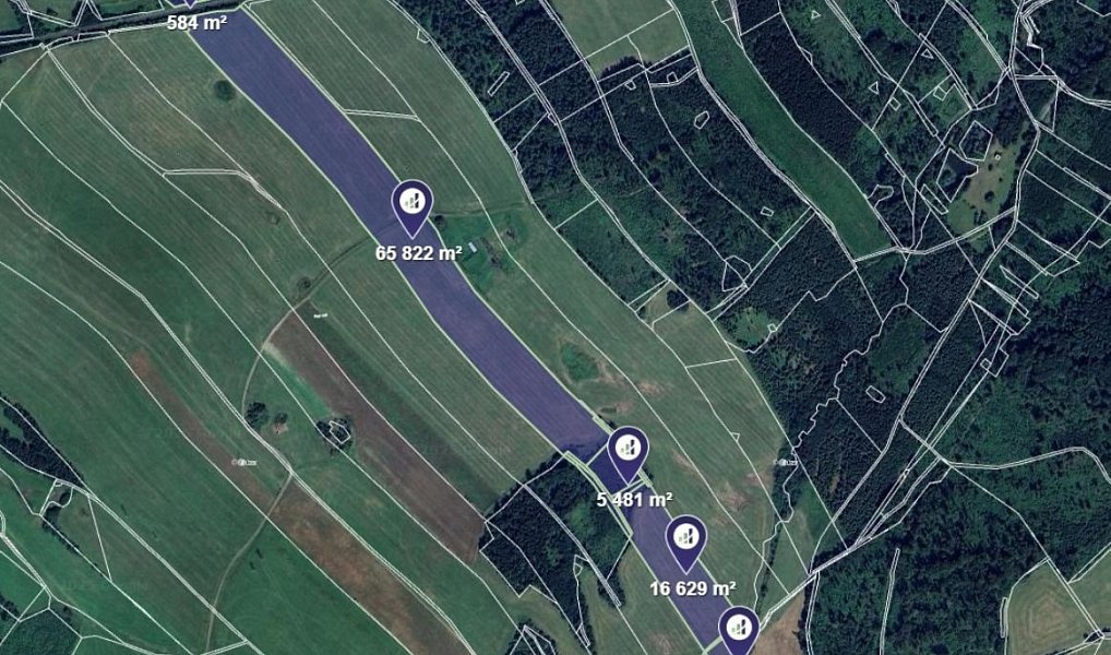 • Parcela č. 625 - o výměře 3493 m² (Lesní pozemek)