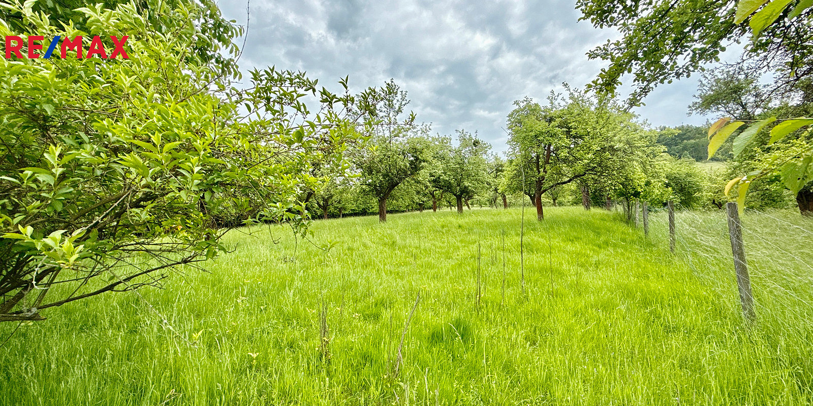 Parcela je z části rovinatá, z části mírně svažitá, osázená ovocnými stromy v kombinaci s travním porostem, celá je oplocená, z jedné strany sousedí se zahradami rodinných domů. K pozemku vede obecní, asfaltová komunikace, centrum města je vzdálené 500 metrů.
