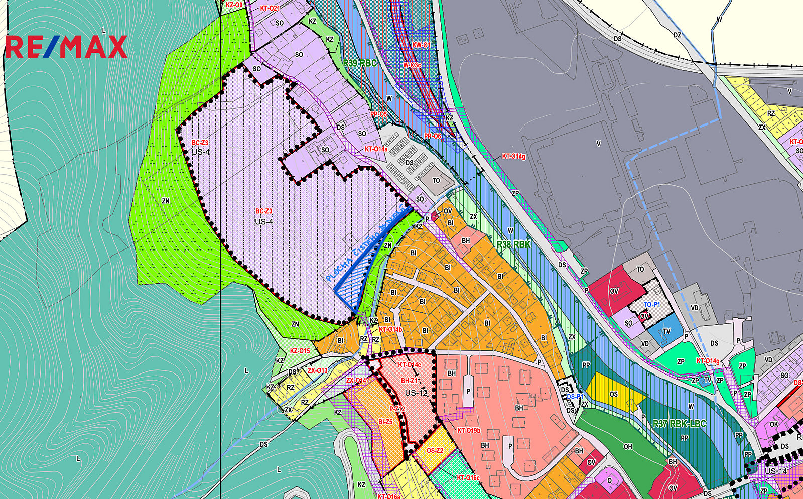Pozemek je veden na katastru jako ovocný sad, územním plánem je cca 50% pozemku určeno k zástavbě čistým bydlením, viz foto.