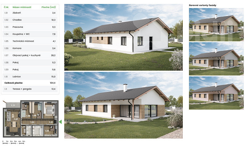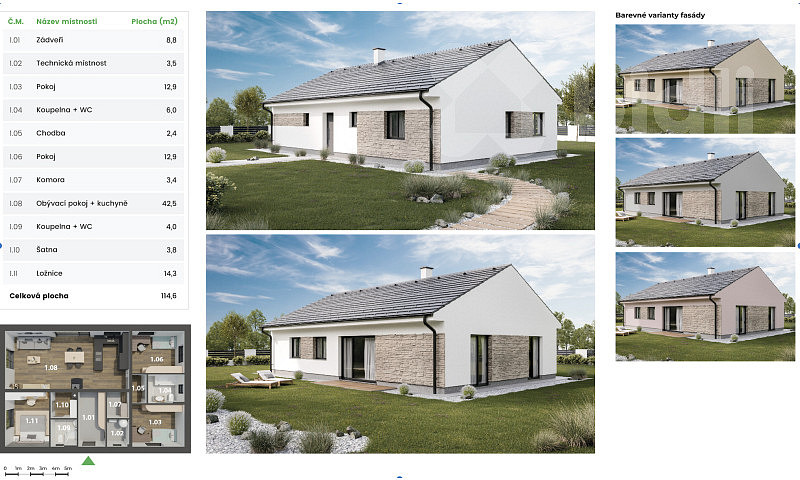 Potenciální čistá podlahová plocha jednopodlažního RD: 164.6 m².